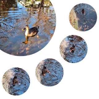 1羽の鴨が夢中になって池に潜っては